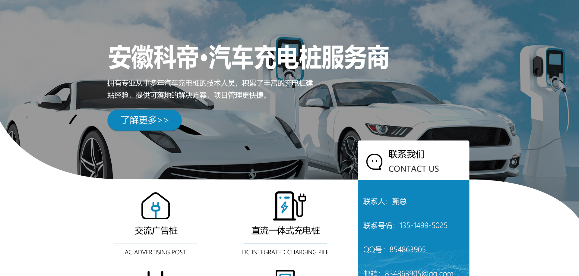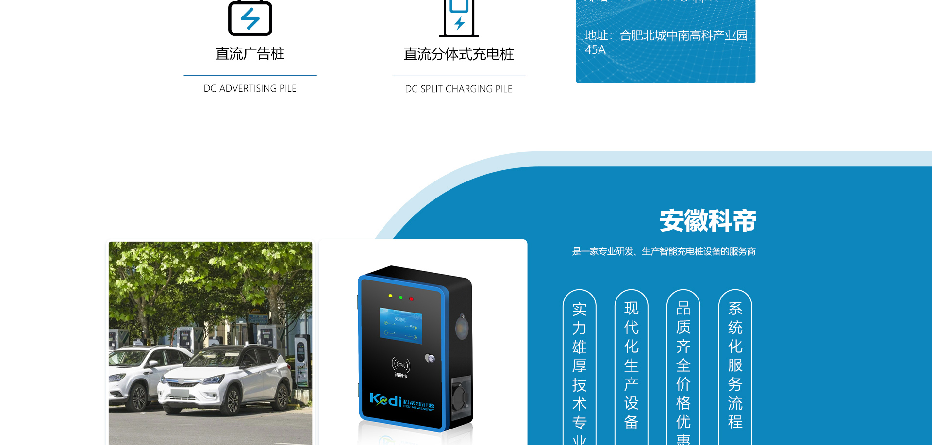 关于我们安徽科帝新能源科技有限公司坐落于安徽省会-合肥,是一家研发、生产智能充电桩设备,汽车充电站后台监控管理系统和生产高压开关设备的企业.由专门的研发团队、管理团队按照现代化企业制度规范设立的有限责任公司。致力于为能源智能、安全的应用和节能减排提供整体的技术与产品解决方案??频奂蟹ⅰ⑸杓?、生产、销售以及服务于一体,在电动汽车充电方案,充电设施建设和城市配电方面拥有广泛的技术研究及经验积累,为客户提供安全、智能的充电设备及充电运营站建设一体化解决方案。并坚持以人为本、质量为先、顾客至上、不断创新”的企业理念,为能源行业的发展、节能减排做出重大的贡献。公司拥有丰富的产品种类,目前科帝已研发生产了三十多种产品,充电设备有直流一体式充电桩、直流分体式充电桩、直流广告桩、交流广告桩、广告一体桩、壁挂交直流桩;等多种充电设备;每一款产品都是精心打造,力求为客户提供优越的用户体验。展望未来科帝将通过持续的自...